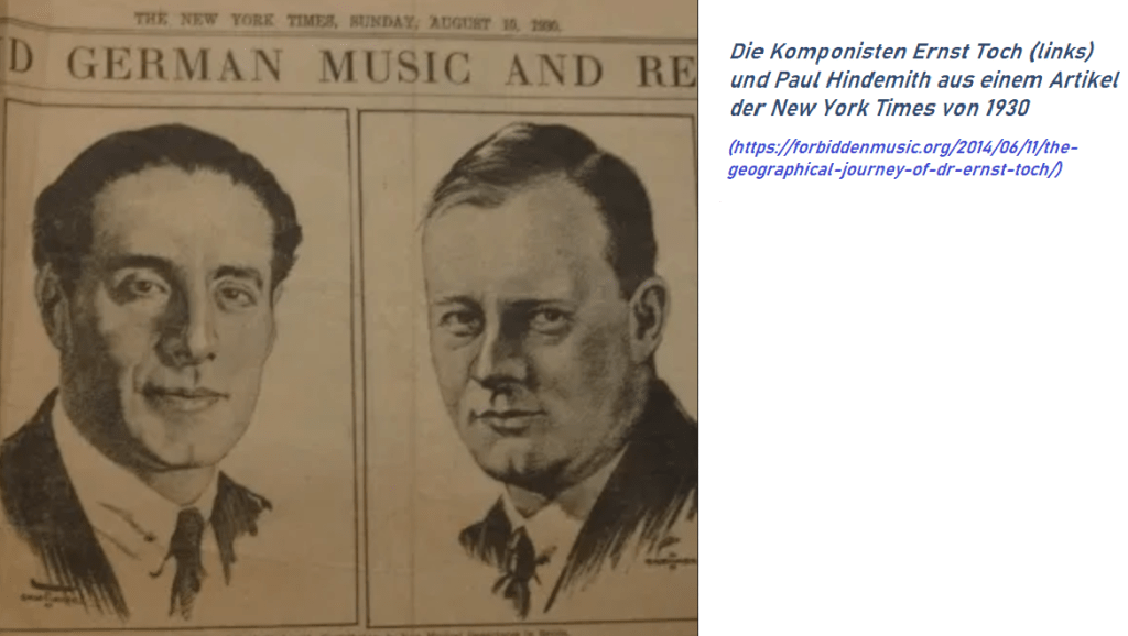 Der 1887 in Wien geborene Ernst Toch zählte Ende der 1920er Jahre noch zu den meistgespielten zeitgenössischen Komponisten im deutsch-sprachigen Raum. Wegen seiner provokanten Klänge, der maschinenhaften Rhythmik und eines scharf dissonanten Kontrapunkts galt er als einer der frechsten Tonsetzer dieser Zeit. Tochs 1930 komponierter Fuge aus der Geographie für vierstimmigen Sprechchor, die als Musterbeispiel für Musik der „Neuen Sachlichkeit“ verstanden wird, kommt bis heute weltweit eine populäre Rolle im Chorrepertoire zu.